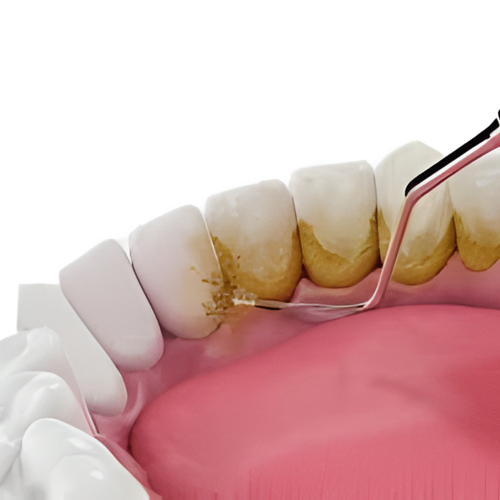 *من الممكن تراكم الجير في المنطقة ما بين اللثة والأسنان وهو ما يصعب الوصول اليه.